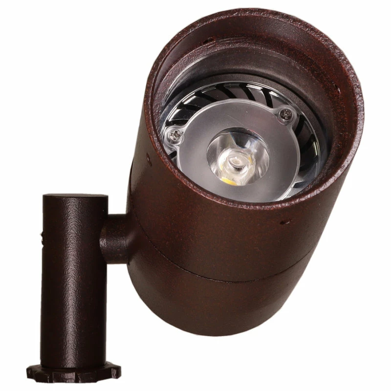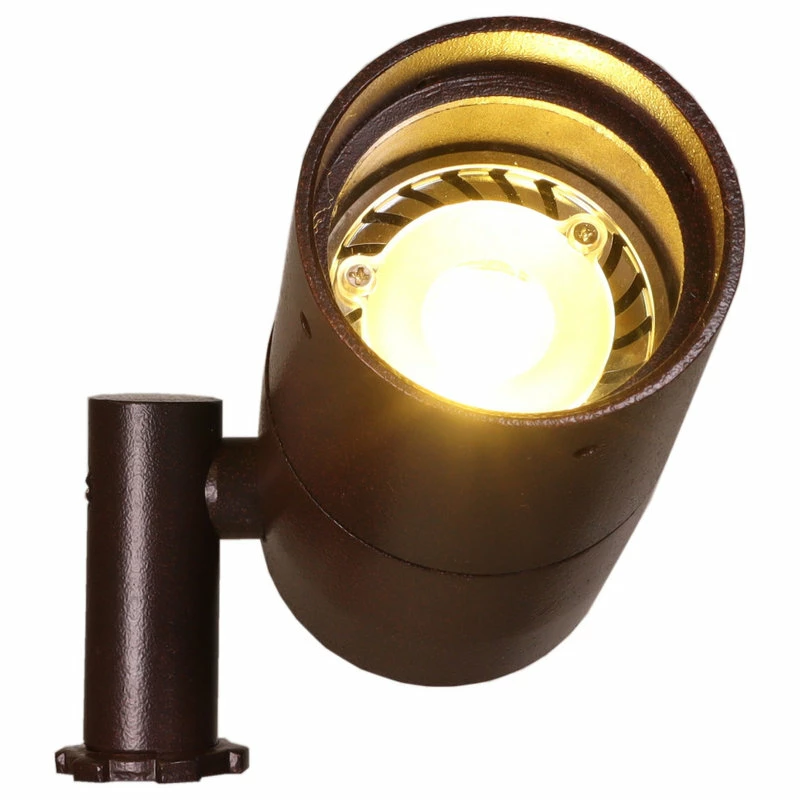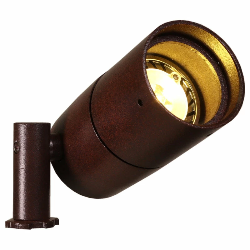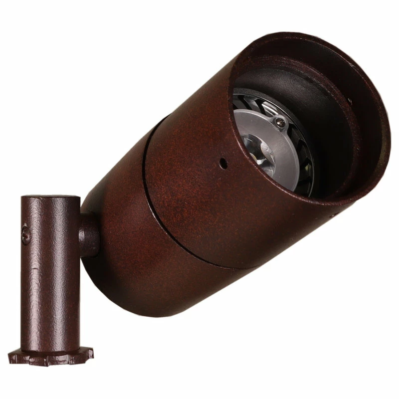 Best Pro Lighting’s professional quality, low voltage Modern Bullet Light in Rust powder coated finish will give a low profile illumination to all of your larger areas, with their sleek low profile and sturdy design, weather-resistant construction and a traditional cylindrical housing style. The best applications for these fixtures are: tree under-canopy lighting, highlighting fountains, medium to large statues, architectural areas, spotlighting small bushes, hedges and mortar walls and exterior home illumination. Best Pro Lighting’s Modern Bullet comes with a tempered and heat resistant clear glass lens, side-mounted knuckle and a ground stake. This fixture requires the usage of a Low Voltage (12-Volt) lighting transformer. Wire nuts and connectors are not included.