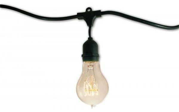 Bulbrite’s stylish string light fixture is the perfect way to enhance any outdoor landscape. This 48′ string is manufactured for outdoor use and features 15 medium (E26) base sockets. Able to string up to 4 sets together with a 1500 wattage max for the entire line.