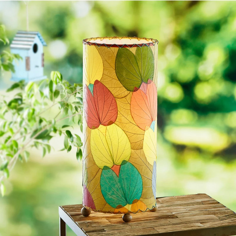 The Butterfly Series highlights the striking alibangbang (known as ‘butterfly’) leaves by alternating between rows of colorfully dyed and natural leaves. The resulting two-toned finish adds a splash of color and personality to its surroundings while still providing upward lighting through its open.