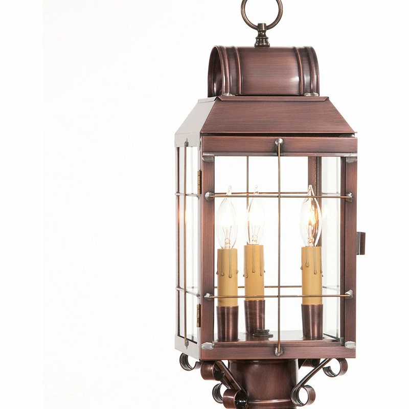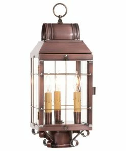 Solid Antique Copper. Direct wired with 3 candelabra sockets, 60 watts max. per socket. Handcrafted in Pennsylvania. This fixture is UL listed with a 5 year guarantee.