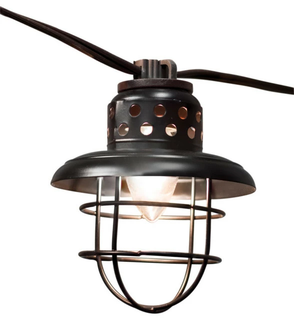 Our Black Lantern Light Strand consists of 10 metal lantern lights on a brown cord. Item includes an end-to-end connector and is suitable for indoor and outdoor use! Strand measures 10 foot long.