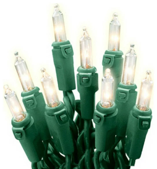 Holiday Wonderlandยฎ Christmas String-To-String Light Set is a perfect way to add seasonal cheer to your home or commercial space. The 300 (2 x 150) clear bulbs are spaced 2.75″ apart on green wire making them the ideal lights to wrap wreaths, mantelpieces, and topiaries. 3 sets of lights can safely be connected end-to-end. Wrap these clear mini lights around greenery and wreaths or use them to trim the tree. Green wire makes hiding lights among greenery and darker areas easy, resulting in a natural looking display. Make your season bright with these durable, reliable, and festive lights.
