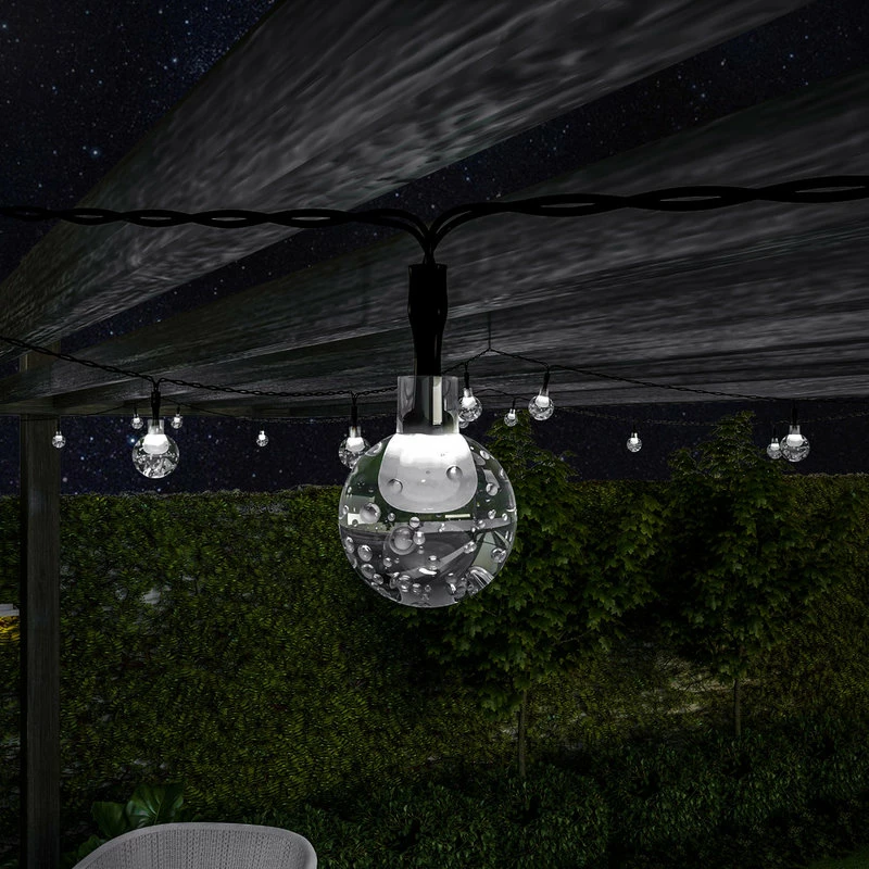 BEAUTIFUL OUTDOOR ACCENT- The globe-style, cool white string lights convert sunlight collected during the day to energy saving lighting in the evening. It is a unique, yet practical accent that adds a decorative and inviting glow to your outdoor space.