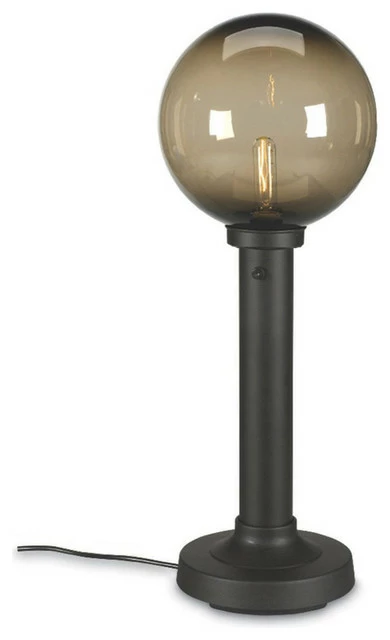 - Moon globe styling with 12″ diameter acrylic globe highlights this contemporary outdoor lamp