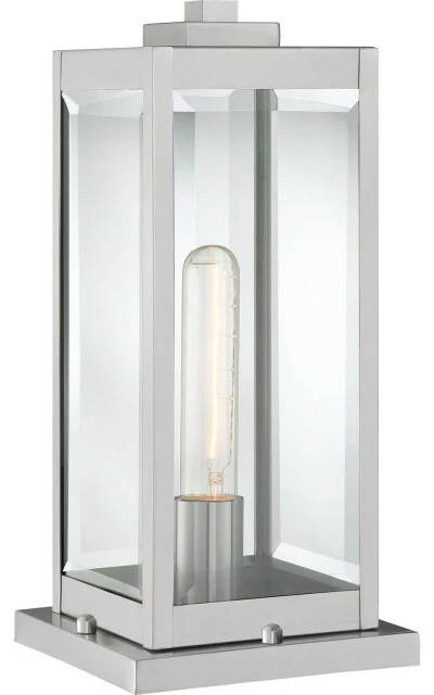 One Light Outdoor Lantern from Westover collection in Stainless Steel finish. Number of Bulbs 1. Max Wattage 150.00 . No bulbs included. The clean lines make the Westover a modern industrialist`s dream. Long rectangular framework with clear beveled glass panels provide an unobstructed view of the fixture`s sleek interior. The mix of finishes further enhances the versatility of this refined collection. No UL Availability at this time.