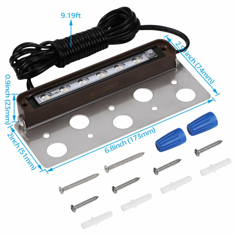 ETL listed this high-quality LED light is safe to use. Compatible with 12V AC/DC low voltage, the aluminum light bar and stainless steel mounting plate are durable, sturdy, and corrosion-resistant. The complete accessories make it easy to install.