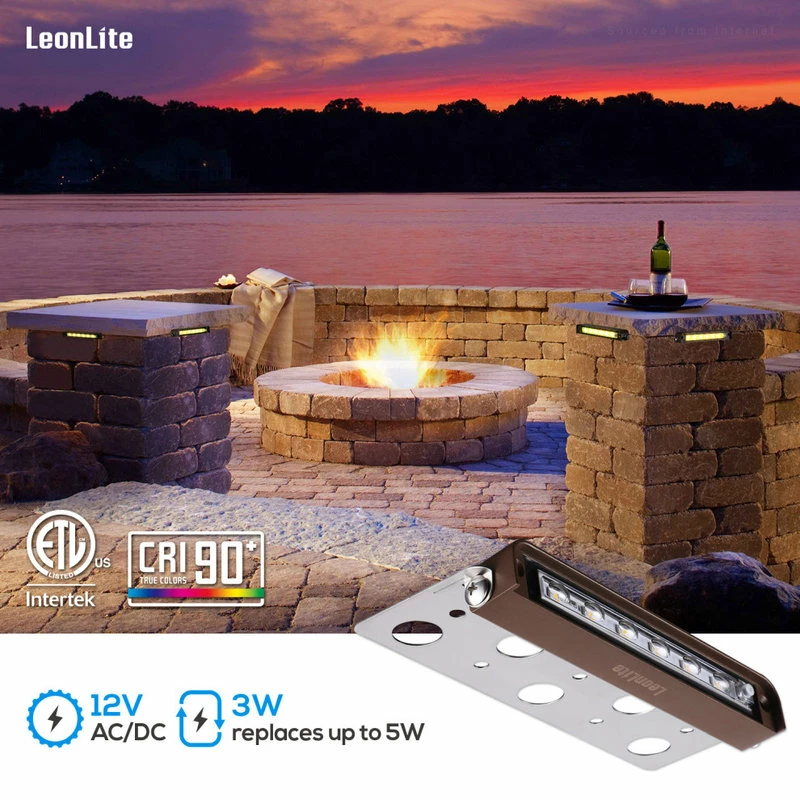Outstanding Lighting: Compatible with 12V AC/DC low voltage, this 3W LED hardscape swivel light delivers 100lm of well-balanced light. The unique raised lens eliminates glare while the integrated design eliminates the need for replacement bulbs