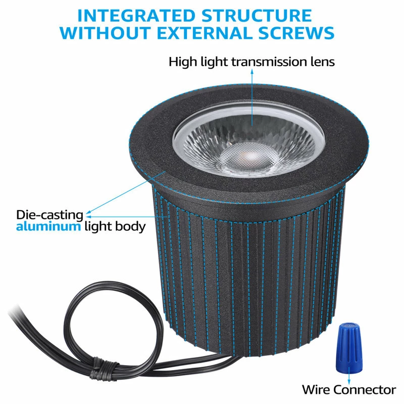 The bright, concentrated glow of this well light won’t irritate your eyes thanks to the high-quality COB LED chips and the outstanding optical lens design.