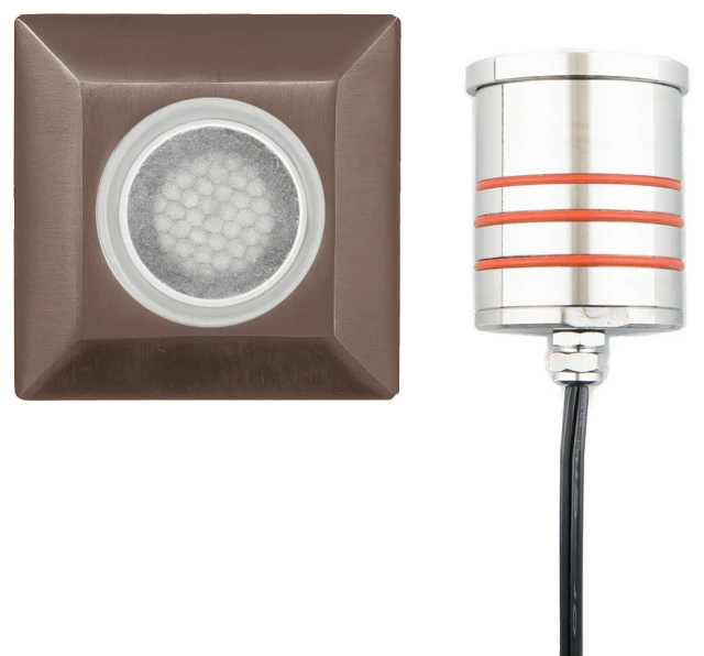 LED Landscape recessed inground indicator luminaire for soft ground applications available in 1 or 2 inch sizes with round, slim, and square face plate options. The indicator light is perfect for both indoor and outdoor applications, including wells and ponds, deck and patios, inground, as well as ceiling and wall applications. Factory sealed and IP68 rated for wet locations or continuous immersion up to 5 meters underwater. Each indicator light includes 6ft of low voltage burial cable, direct burial gel filled wire nuts, and an optional spring retention clip. Magnetic (preferred) or Electronic Power supply is required. Concrete pour kits are available for additional installation options. Manufactured with a stainless steel construction and available in a stainless steel finish or a bronzed stainless steel finish. Stainless Steel may provide enhanced protection against corrosive elements and is recommended in coastal and marine grade environments. Factory sealed water tight and IP68 rated for wet locations or protection against water immersion up to 5m deep and outdoor elements. Each indicator light includes 6ft of low voltage burial cable, direct burial gel filled wire nuts, and optional spring retention clip. Magnetic (preferred) or Electronic Power supply is required. Concrete pour kits are available for additional installation options. Available with a built-in Honeycomb Louver for glare reduction. High Powered LED, Input: 9-15V AC, Power: 4W (7VA), Brightness: up to 170Lm, CRI: 85, Rated Hours: 70,000. Standards: UL 1838 & IP68 Rated for Wet and Submersible Locations. Shade Included: TRUE Dimable: TRUE Warranty: 1 Year Functional/2 Years Finish Color Temperature: CRI: 85 Lumens: 170 Beam Spread: 50๏ฟฝ Average Hours: 70000 Hours2.75″ 12V 4W 1 LED Sqaure Indicator Light with Honeycomb Louver Brass Clear Glass *UL Approved: YES *Energy Star Qualified: n/a *ADA Certified: n/a *Number of Lights: Lamp: 1-*Wattage:4w LED bulb(s) *Bulb Included:Yes *Bulb Type:LED *Finish Type:Brass