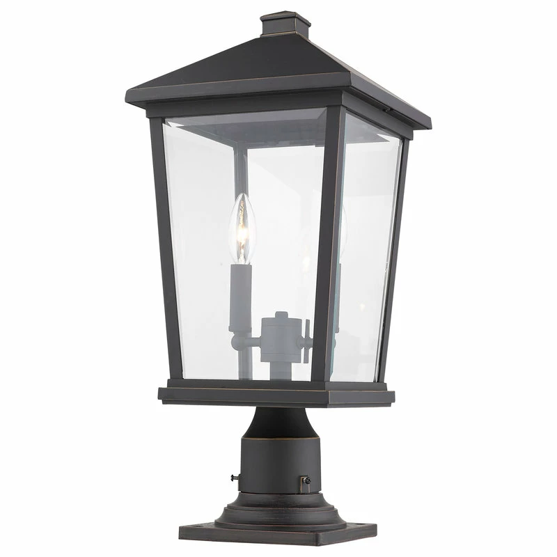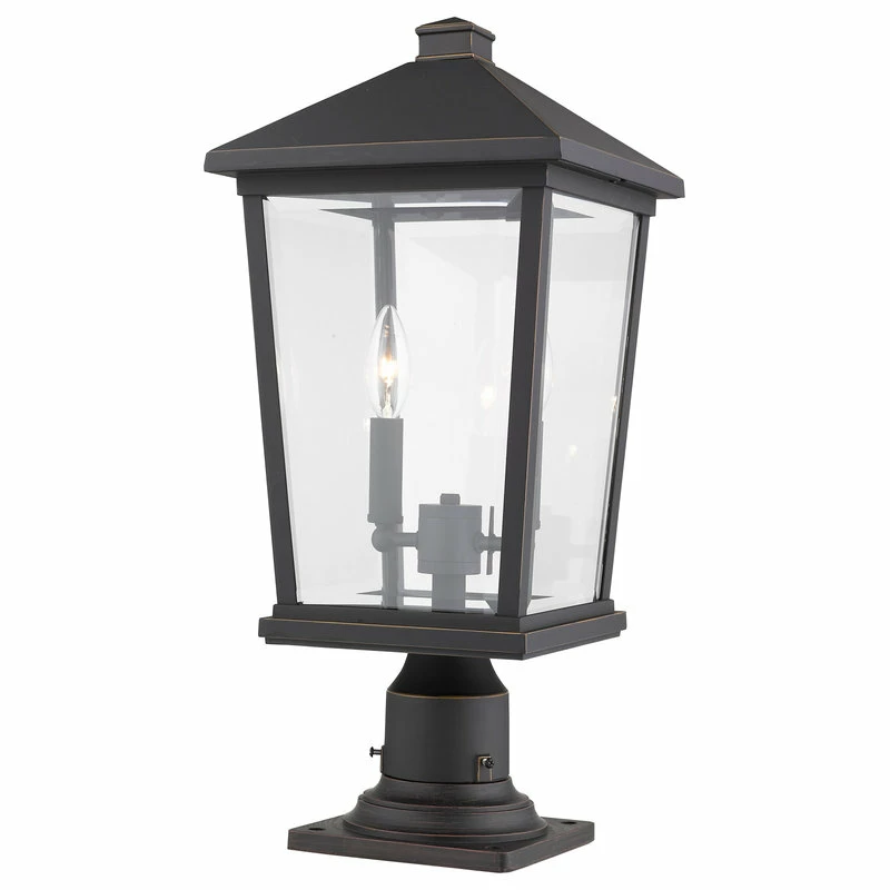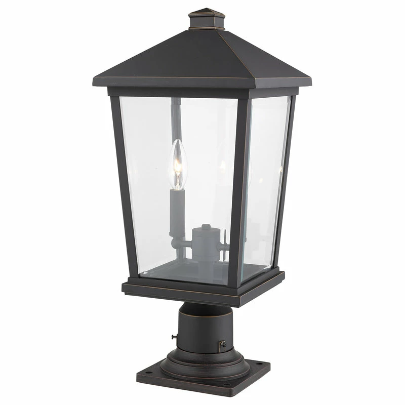 Take advantage of charming design personality as you illuminate a walkway or garden space. Make this rubbed bronze finish outdoor lantern post light an artful addition to a custom landscaped yard.