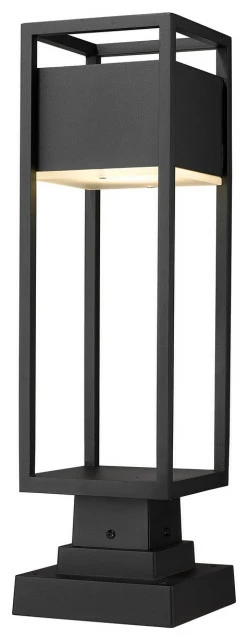 Ideal for contemporary home exteriors this ultra-modern outdoor pier mount fixture from the Barwick collection lends a minimalistic flair to an outdoor entertainment area. Featuring a tall cage-style aluminum lantern in a handsome deep black finish this outdoor pier fixture lends itself nicely to existing building facade color schemes and materials. In addition it features a fundamental design with updated elements such as energy-efficient LED-integrated technology along with an etched glass plate to protect and diffuse the bulbs.
